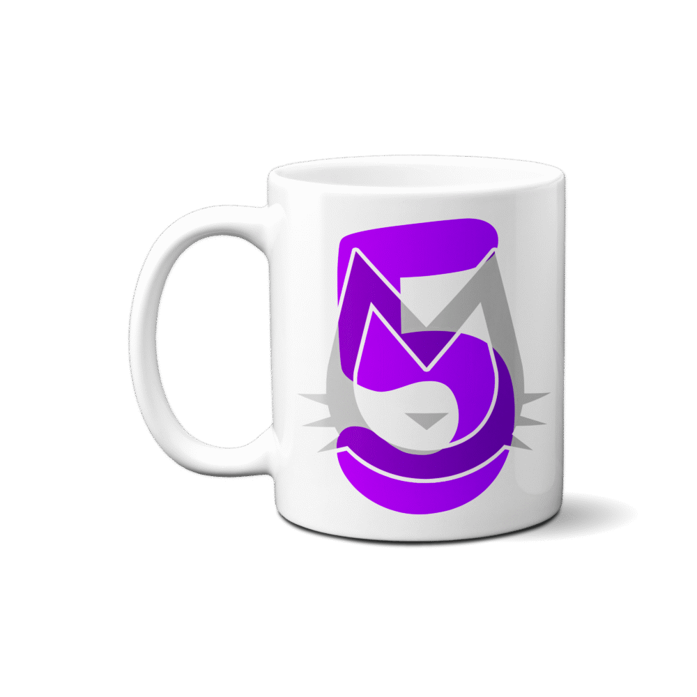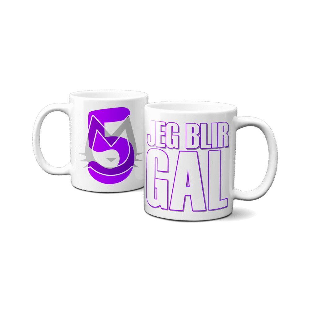 Bemærk: Designet er på én kop med print på begge sider af koppen – Den specifikke 5Års Kop er kun med 5 års designet på den ene side, og blank på modsatte side.