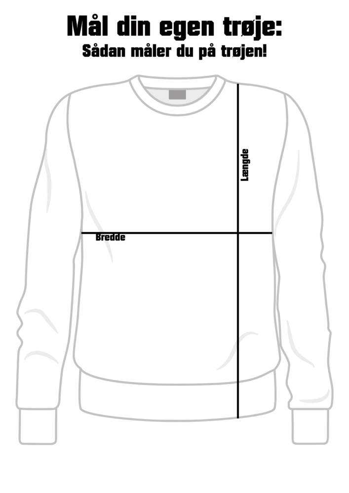 For at mindske problemer med størrelserne, og derved også mindre spild af ressourcer (både produktion af ny trøje og ekstra fragt) så anbefaler vi at du ud fra vores størrelsesguide her finder ud af hvilken størrelse du har brug for.